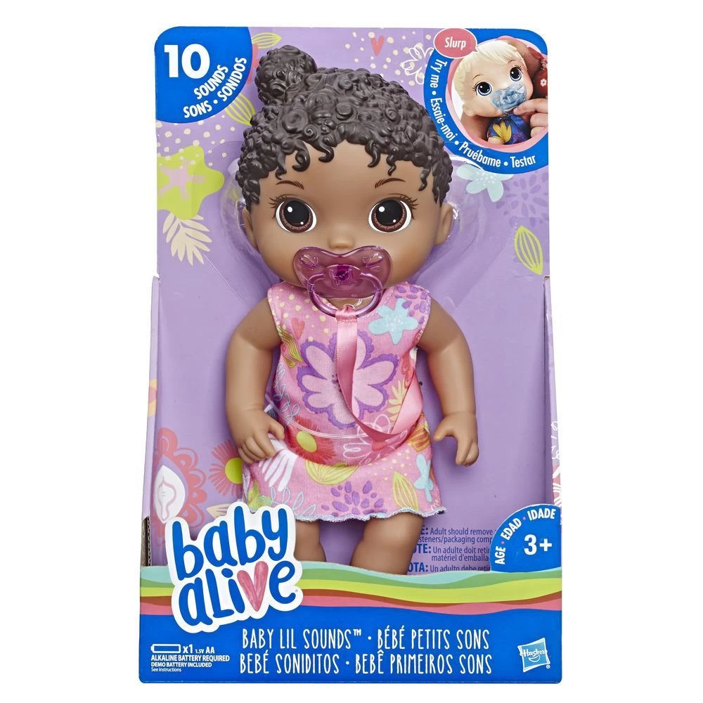 Hasbro BABY ALIVE Baby Lil Sounds: Interactive Black Hair Baby Doll