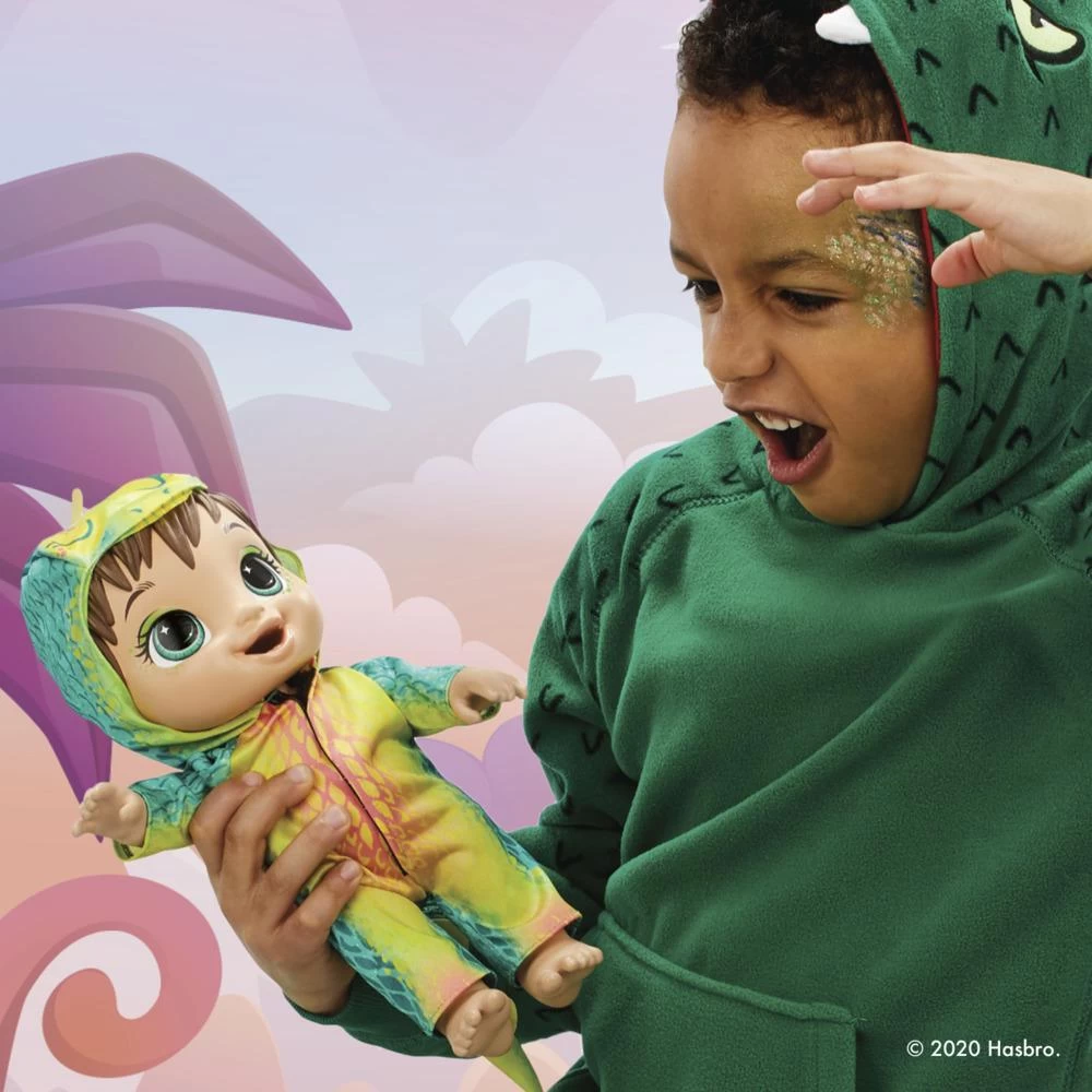 • DINOS IN JAMMIES: What’s cuter than a baby dinosaur in pjs? She even has reptile-inspired facial decoration! Kids can imagine adorable adventures with this Baby Alive Dino Cuties doll