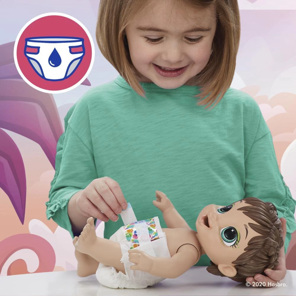 • DOLL THAT DRINKS AND WETS: After she drinks, she’s going to need a diaper change! That’s because this Baby Alive Dino Cuties doll “pees” like a baby! (Additional doll diapers sold separately.)