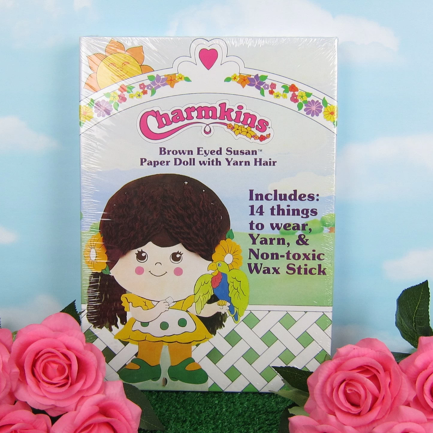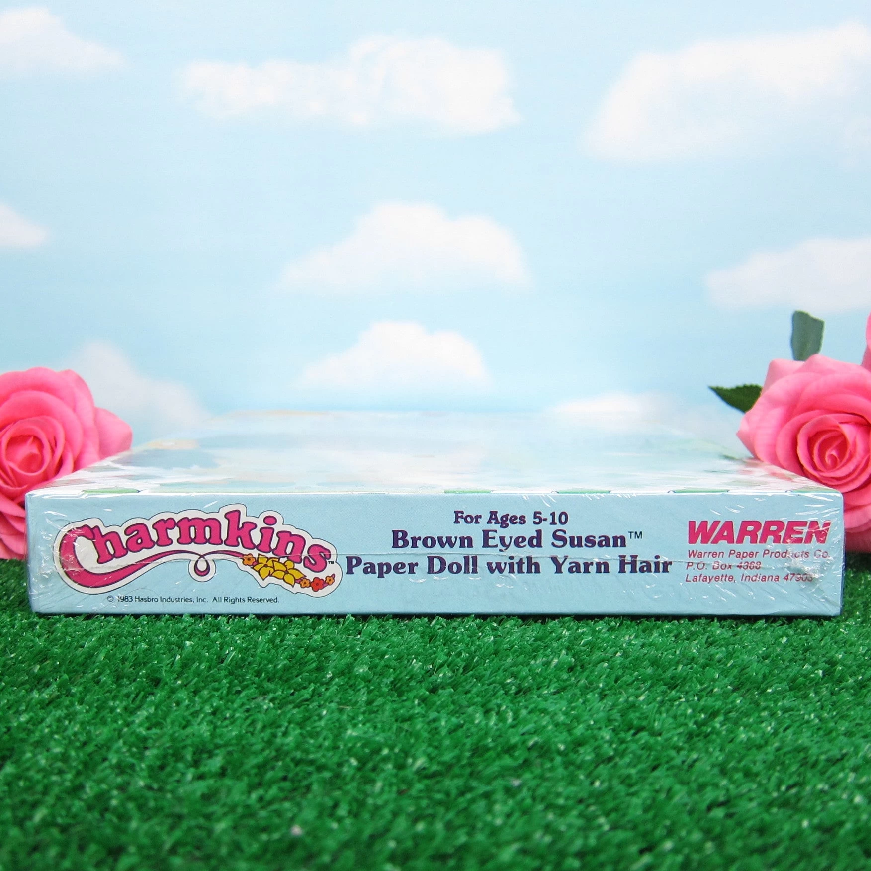 This vintage Charmkins paper doll boxed set includes a paper doll of Brown Eyed Susan and 14 things to wear. The paper doll set is unused and is still sealed in its original box.