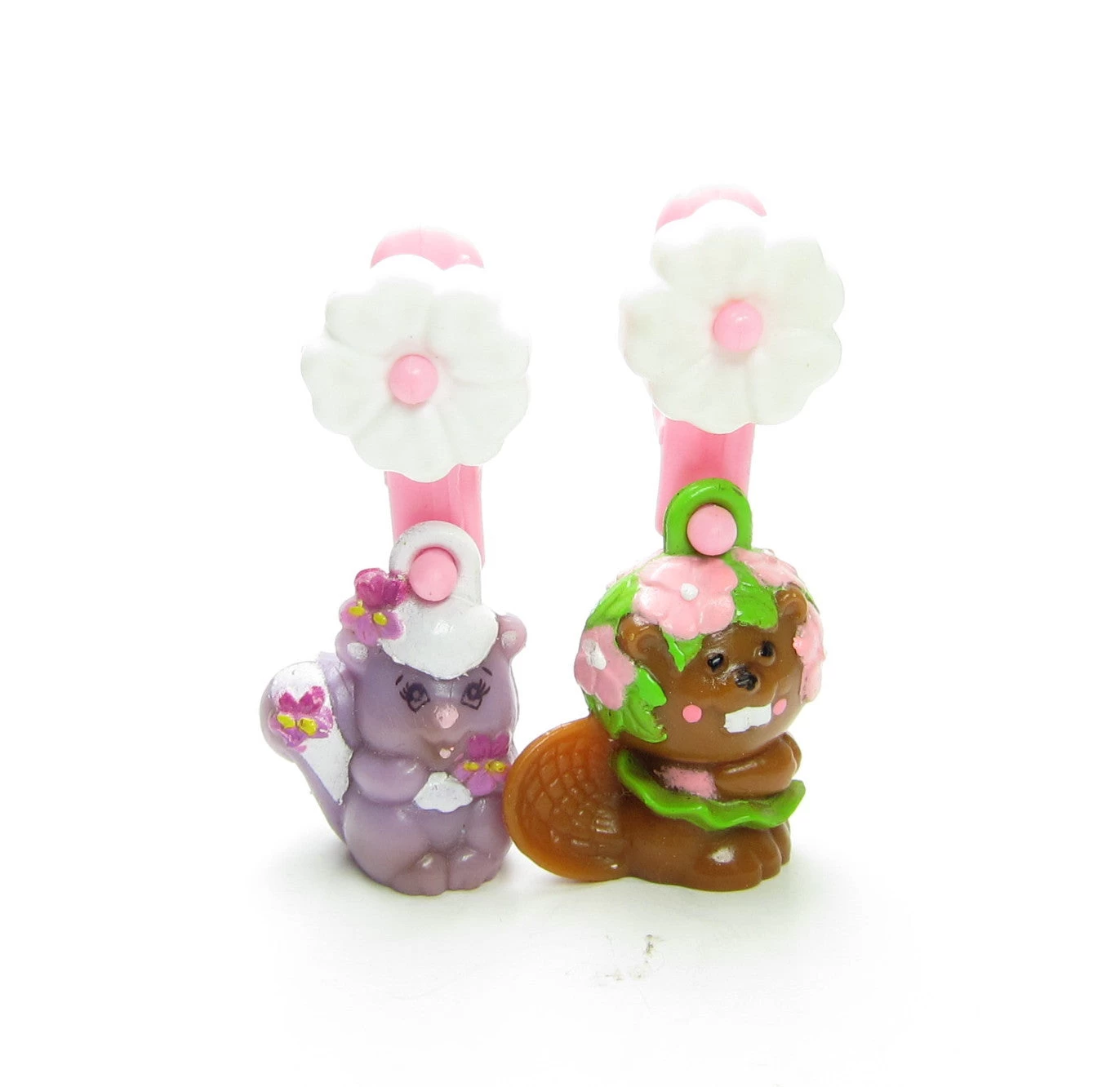 The last two photos show how they look with Charmkins charms added, this makes a great way to display them. Busy Lizzie Beaver and Violet the Skunk are not included but are sold separately.