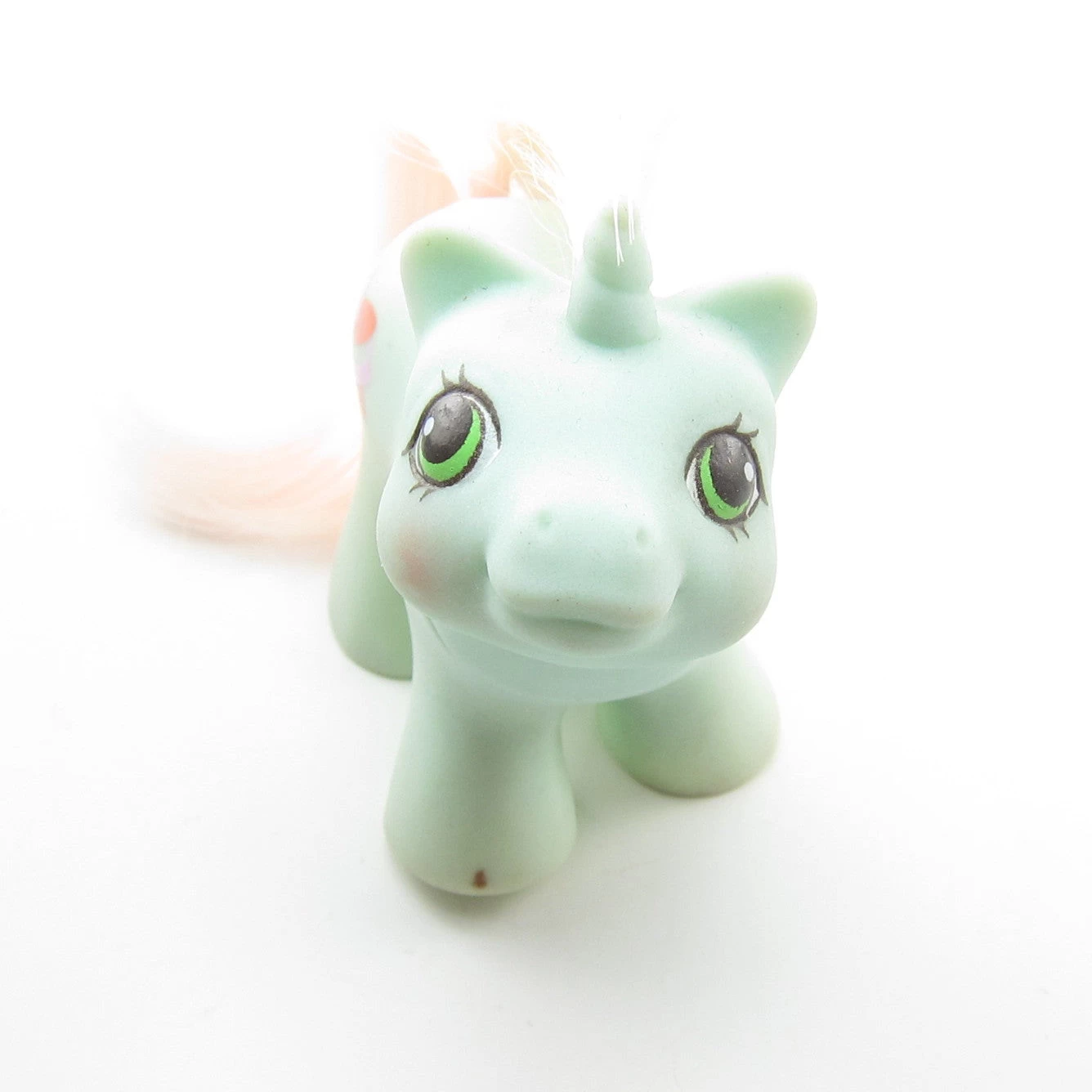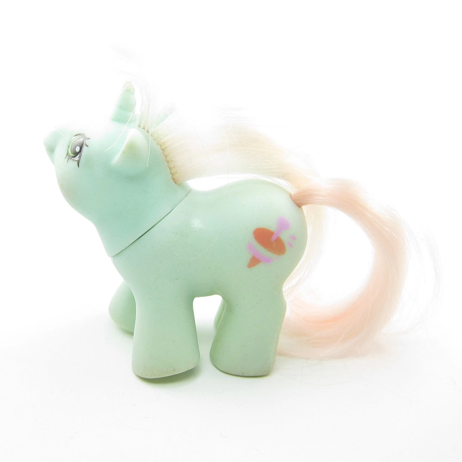 This My Little Pony is Jabber and is of the Newborn Twins Ponies from Year 6. Jabber was originally sold in a set with her twin, Jebber, who was identical except for a slightly different pose.