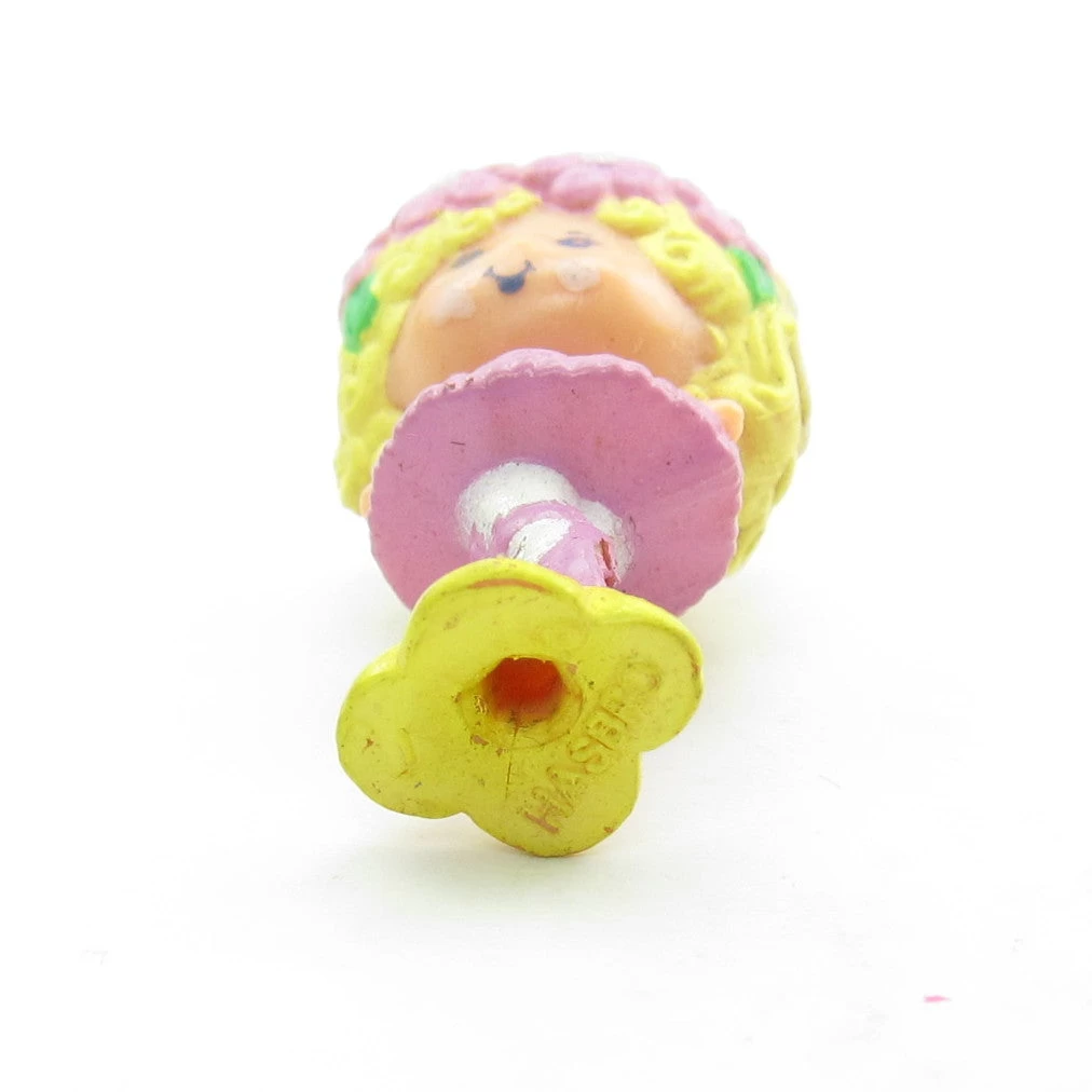 This vintage Charmkins toy is the Lady Slipper Ballerina charm. It originally came with the Wrist Dancer bracelet, but that piece is missing. Lady Slipper is a ballet dancer with blonde hair and wears a pink tutu and ballet slippers.