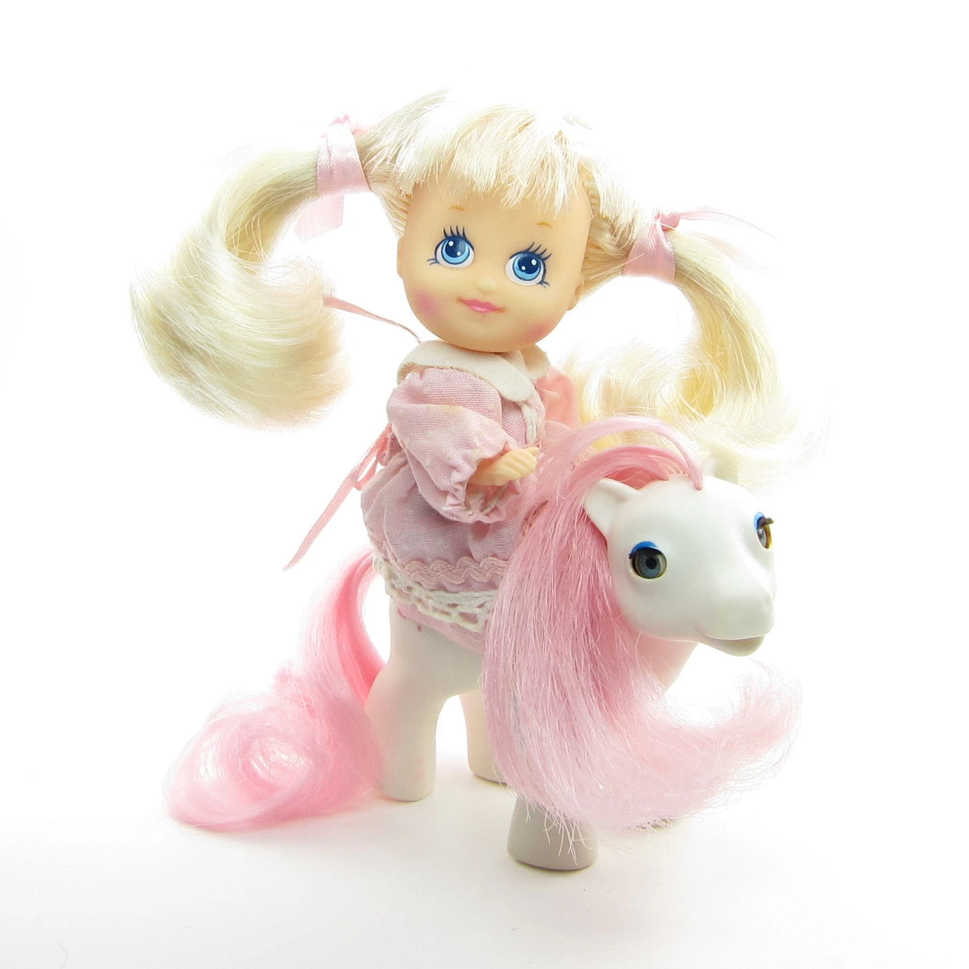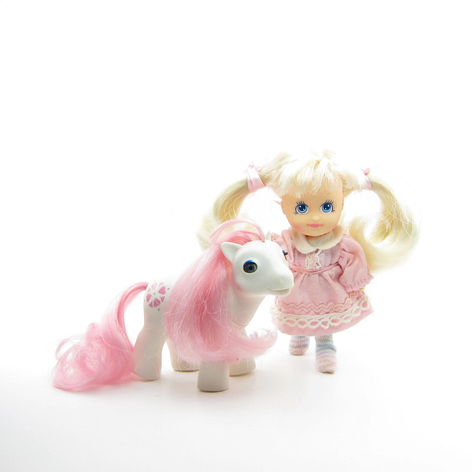 This vintage G1 My Little Pony set from in Year 4 is Molly and Baby Sundance. It includes a white pony, Baby Sundance, and her human friend Molly.